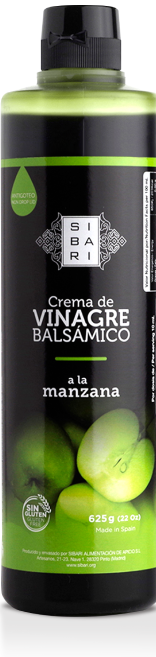 Vinagre de vino, vinagre balsámico de vino (22%) (Vinagre de vino, mosto concentrado de uva) dextrosa, fructosa, almidón modificado de maíz, aroma de manzana, antioxidante (ácido ascórbico), conservador (E-202) y colorantes (E-102 y E-133).
