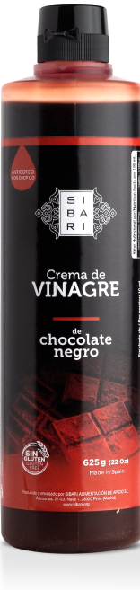 Vinagre de vino (40%), fructosa, dextrosa, almidón modificado de maíz, chocolate negro 4% (Pasta de cacao, azúcar, manteca de cacao, aroma: vainillina), colorante (E-150d) y conservador (E-202).